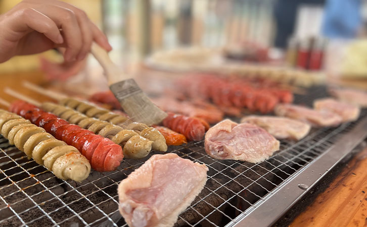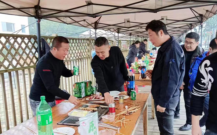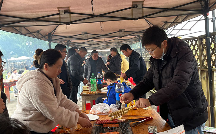 游玩過后,饑腸轆轆的人們開始燒烤,各組人員分工明確、團結(jié)協(xié)作,你生火我備料,圍坐在一起共同分享自己制作的美食,觥籌交錯間,匯聚著朝夕相處的同事們濃濃的友情和幸福。