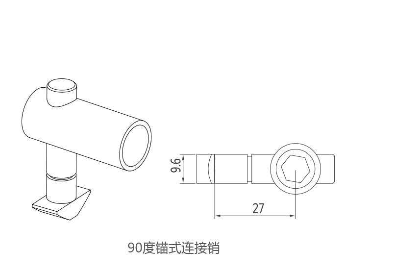 用于兩根鋁型材90度的直角連接。安裝時,它隱藏在型材內(nèi)部,請根據(jù)實(shí)物加工孔位。