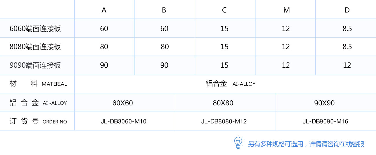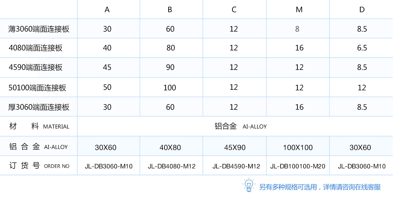 端面連接板主要用于矩形和大尺寸多孔方形型材與蹄腳及腳輪等配件連接時(shí),起過渡作用。