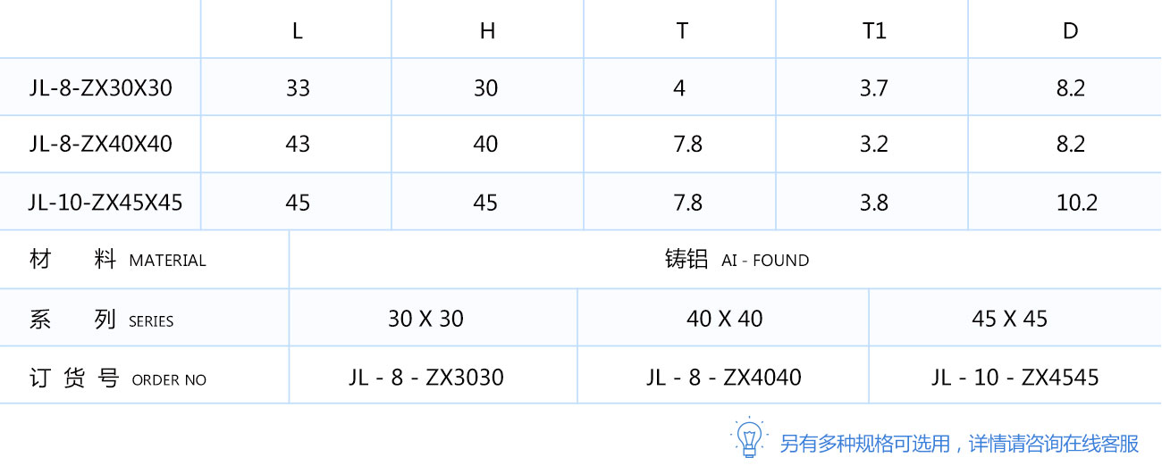 用于兩根不相垂直的型材連接,連接螺栓及螺母塊需要另配。