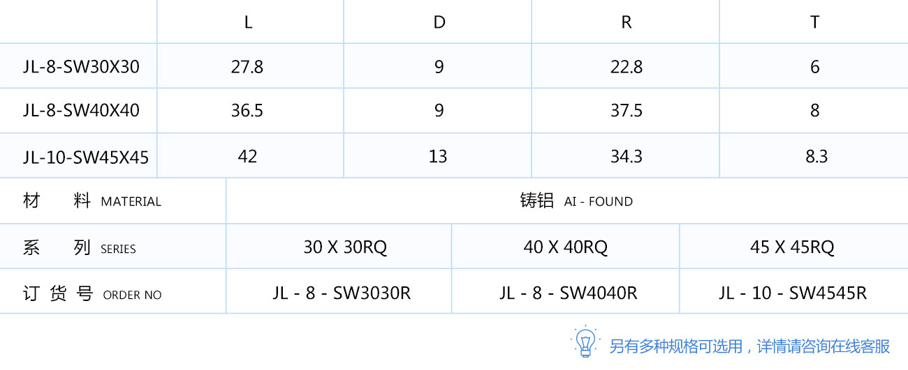 這種角連接是半圓形型材的專用連接件,它能把兩根或三根型材連接在一起,加之配套的蓋板,十分簡潔美觀。連接螺栓需另配。