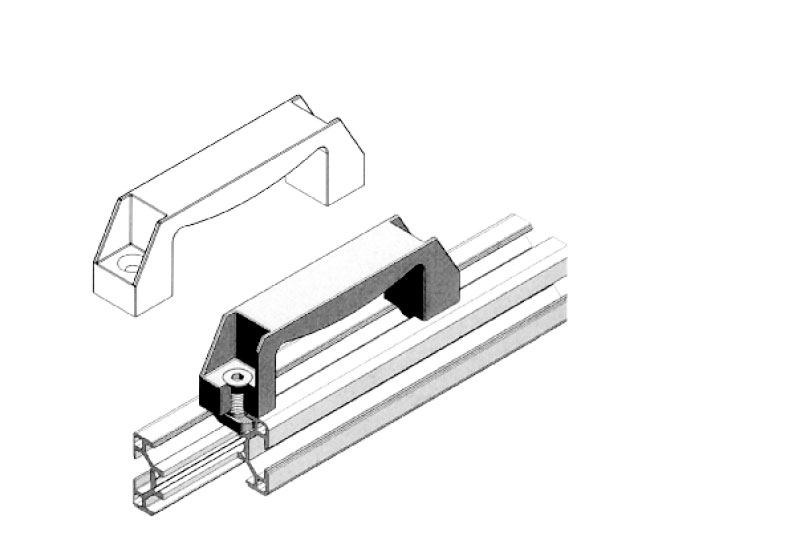 將手柄安裝在型材上,便于開啟與提攜。連接螺栓與T型螺母塊需另配。