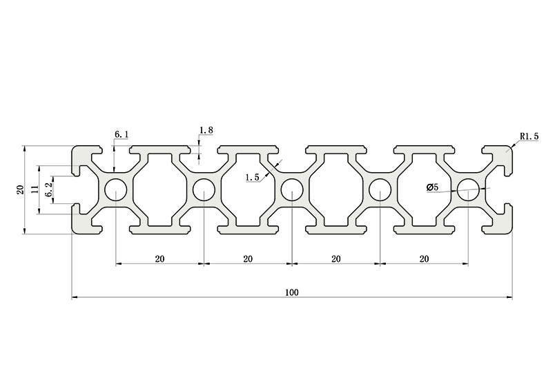 JL-6-20100E,6mm 槽寬工業(yè)鋁型材系列