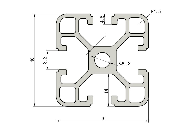適用于應(yīng)力及強(qiáng)度較大的框架組合結(jié)構(gòu),它的外型采用圓角過渡,表面經(jīng)過陽(yáng)極氧化處理,高雅美觀并抗腐蝕,它通常采用M8X20高強(qiáng)度專用螺栓加彈性扣件的內(nèi)部連接方式,堅(jiān)固而又可靠,是工業(yè)框架應(yīng)用較為廣泛的型材之一。