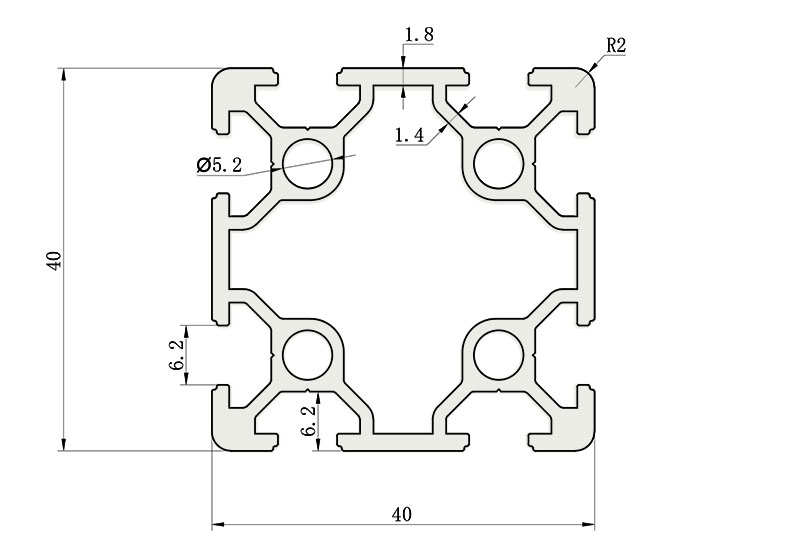 適用于應(yīng)力及強(qiáng)度較大的框架組合結(jié)構(gòu),它的外型采用圓角過渡,表面經(jīng)過陽(yáng)極氧化處理,高雅美觀并抗腐蝕,它通常采用M8X20高強(qiáng)度專用螺栓加彈性扣件的內(nèi)部連接方式,堅(jiān)固而又可靠,是工業(yè)框架應(yīng)用較為廣泛的型材之一。